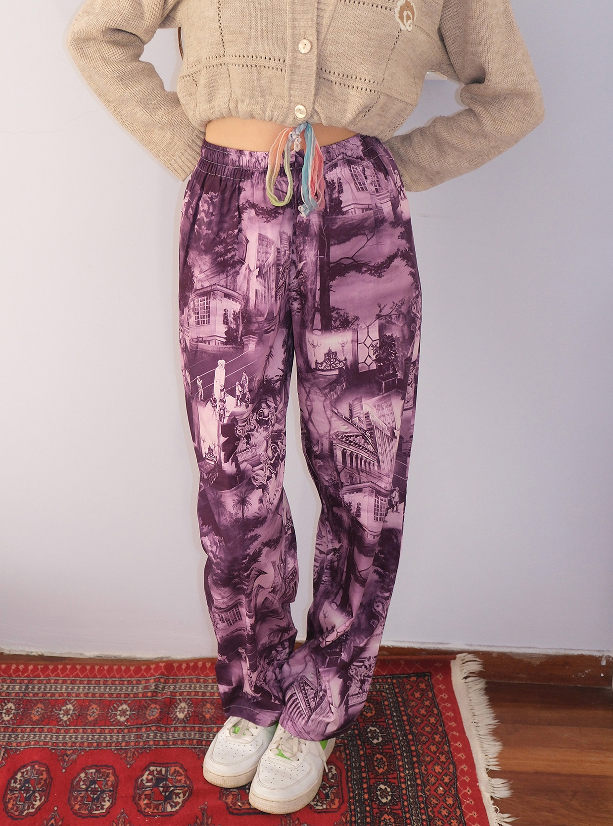 Crafted from 100% cotton poplin .The purple memories pants feature a travel-inspired print drawn from old photo albums and adventures. Designed to be bold yet wearable, these pants bring storytelling and style together in one effortless piece.
